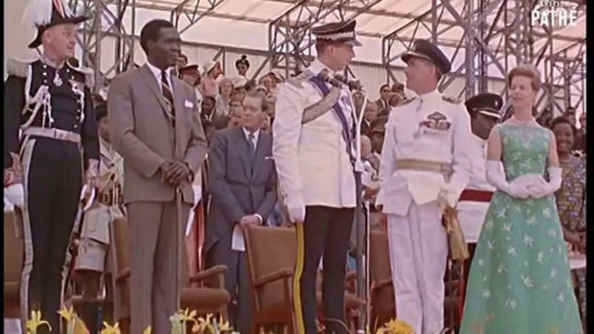 Left to right: Governor Sir Walter Coutts, prime minister Apollo Milton Obote, Duke of Kent Edward (centre), and Duchess of Kent Katharine (right) during celebrations to mark Uganda’s Independence at Kololo in Kampala on October 9, 1962.